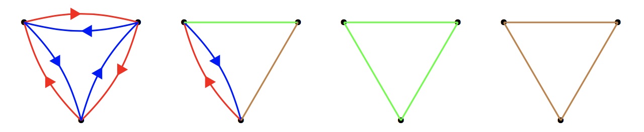 没有一个仅由绿色边(或棕色边)组成的三元环。